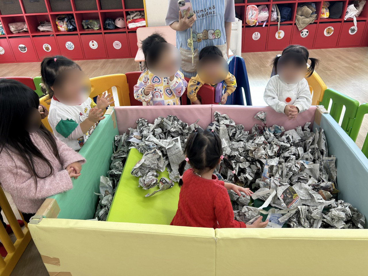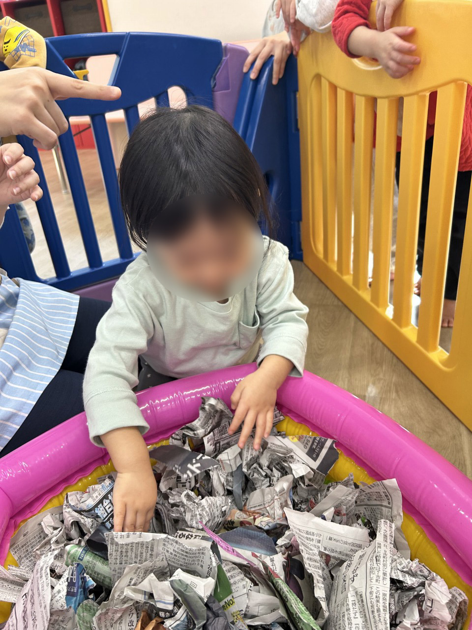 1人ずつ新聞紙の中からお芋を探しています!どこかな~?