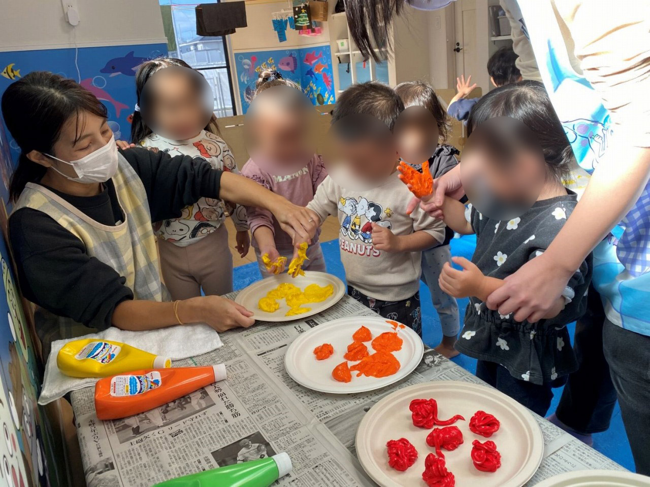 11月はゆび絵の具を使ってみんなで秋の製作をしました。